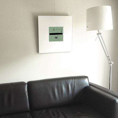 ●参考写真の額装:アルミフレーム(BH-03J/ホワイト/50cm角)と白無地マット(窓抜きサイズ=横22cm×縦23.2cm)