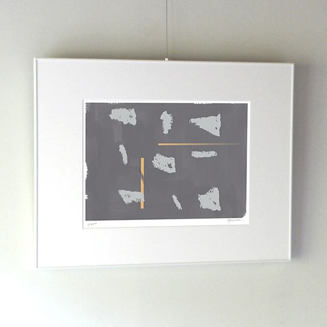 ●額装:アルミフレーム(BH-03J/小全紙=横65.9cm×縦50.7cm)と白無地マット(窓抜きサイズ=横43m×縦31.9cm)