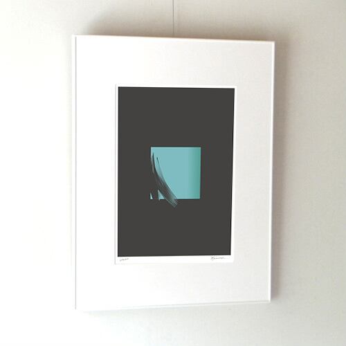 ダークグレー(グリー・テルー)とブルー・パールの2色による抽象画(ピエゾグラフ)。