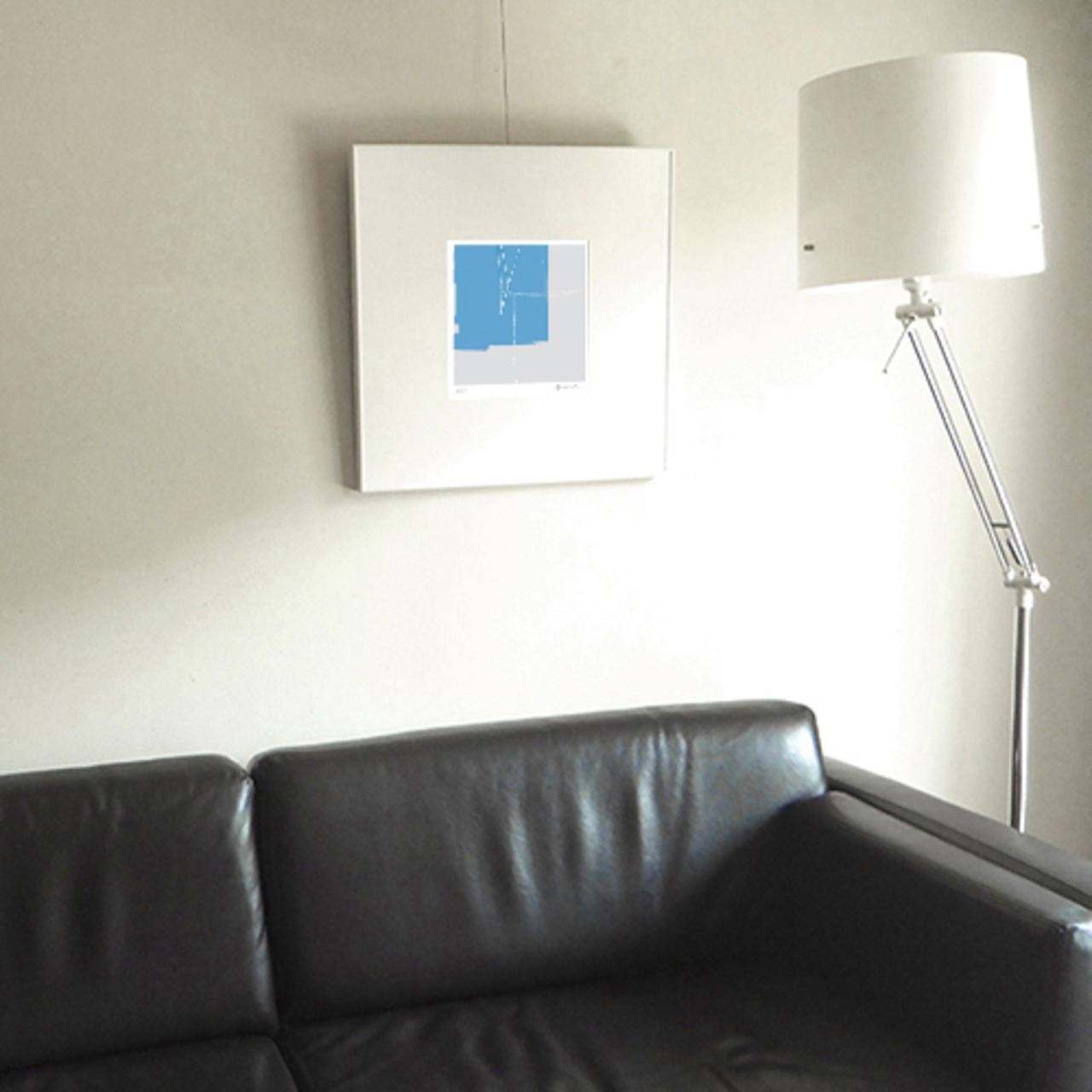 スカイブルーとライトグレーの現代感覚に溢れたピエゾグラフ。