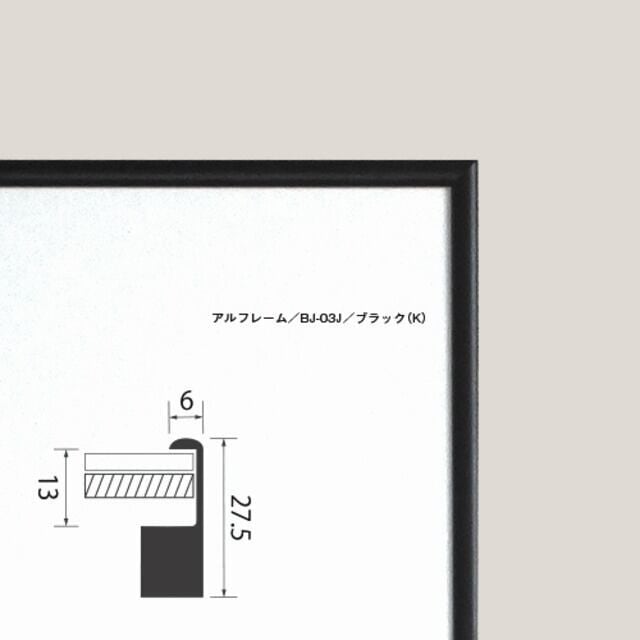 ●額装:アルミフレーム(BH-03J/小全紙=横50.7cm×縦65.9cm)と白無地マット(窓抜きサイズ=横30.7cm×縦44.2cm)+アクリル・カバーガラス